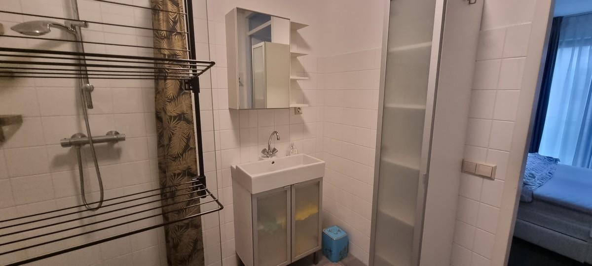 2 slaapkamers, De masterbedroom, voorzien van een 2-persoonsbed en een ruime kledingkast, heeft ook grote raampartijen voorzien van een Frans balkon, aansluitend de badkamer met een inloopdouche, en wastafel.