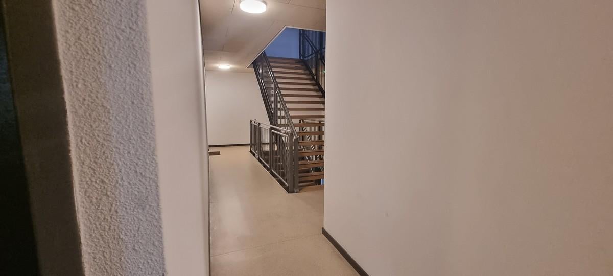 Indeling begane grond: Gezamenlijke entree met brievenbussen, intercomsysteem, lift, trappenhuis en toegang tot de berging.