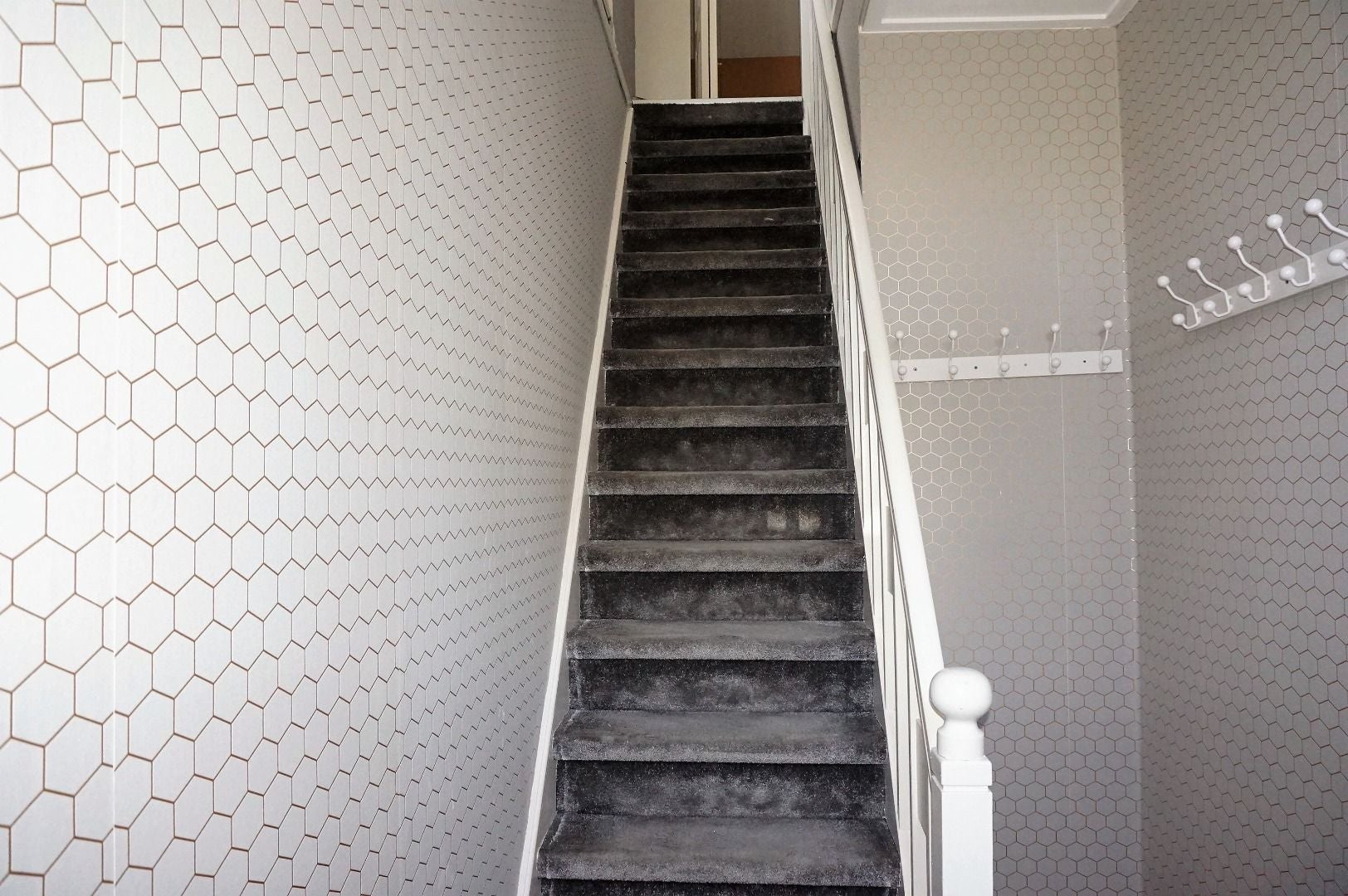 1e etage: 2 ruime slaapkamers en 1 kleinere kamer, op de overloop een ruime hang/legkast en vlizotrap met toegang tot de bergzolder.