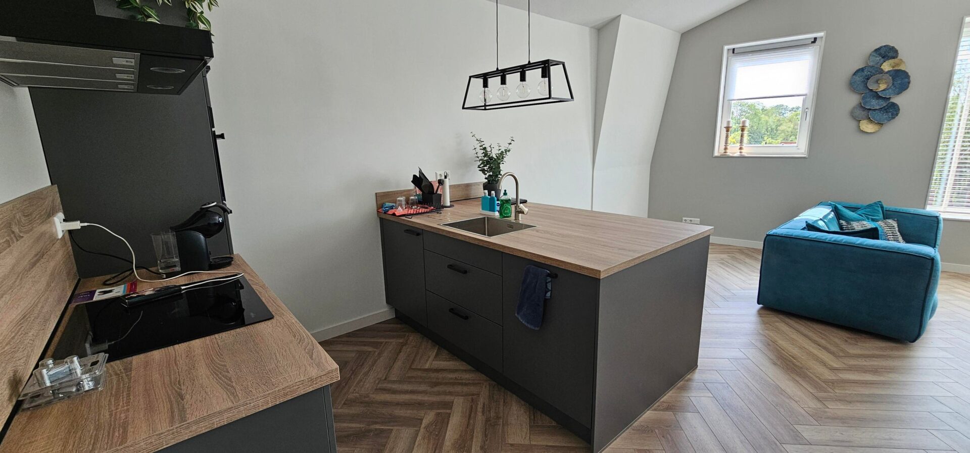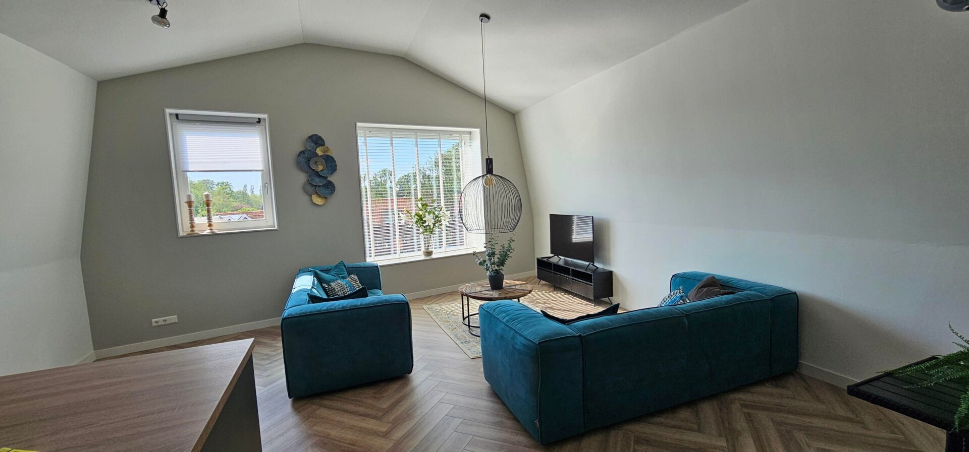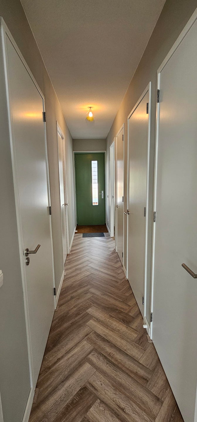 De gehele woning is voorzien van een prachtige visgraten laminaatvloer wat een zeer luxe uitstraling geeft.