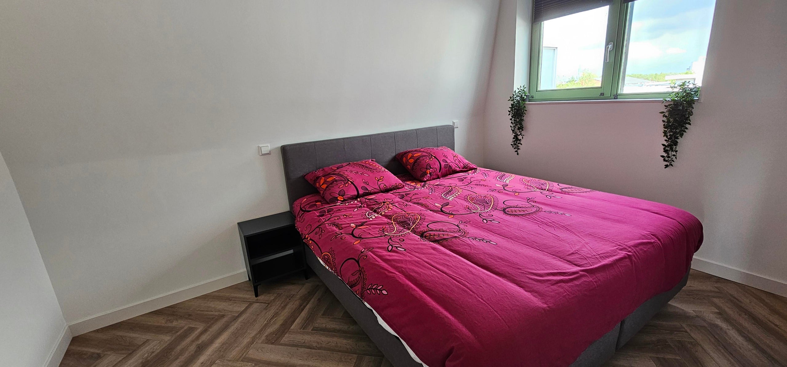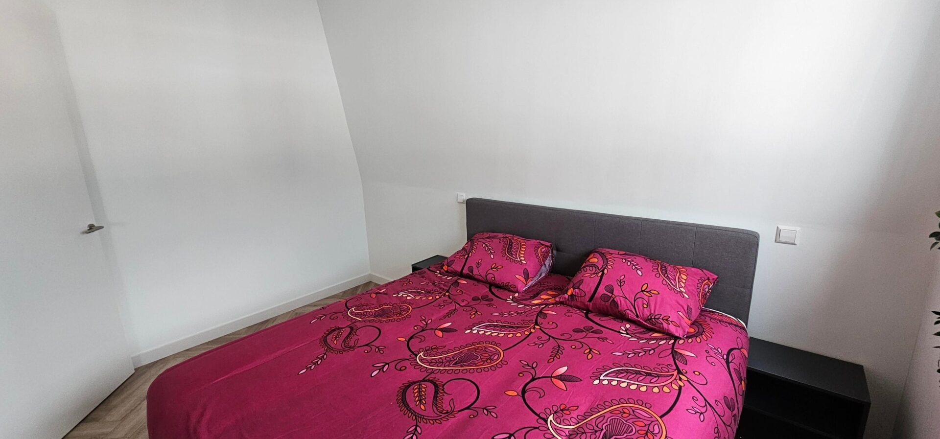 De woning beschikt over 2 slaapkamers waarvan de kleinste momenteel is ingericht als thuiswerkplek. De masterbedroom is voorzien van een ruim queensize bed.