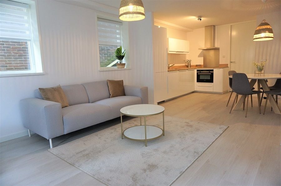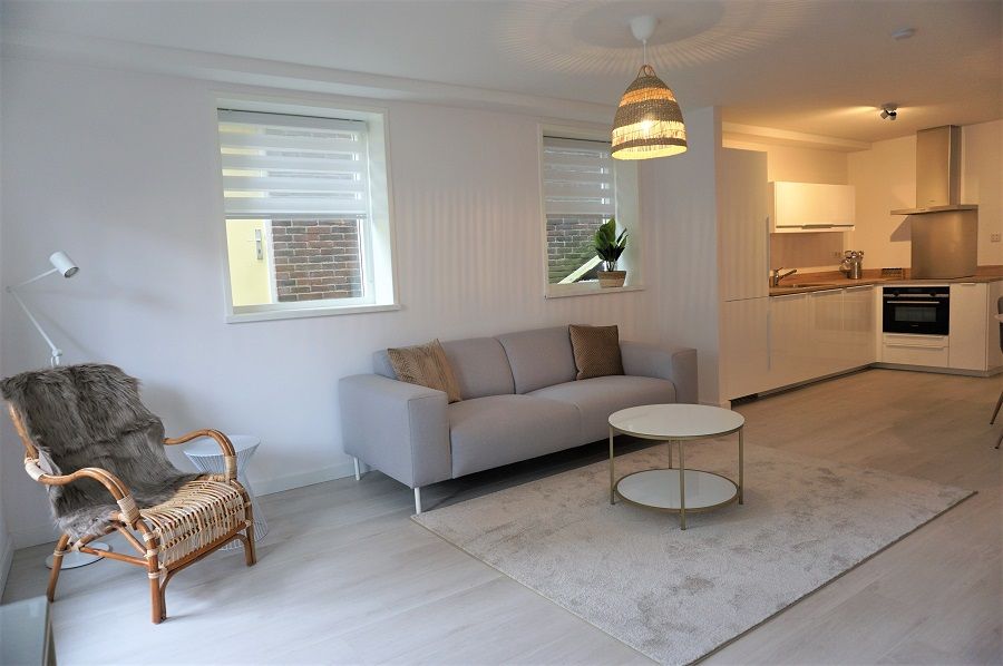 Indeling: Vanaf de straat kunt u met een trap naar de entree van het appartement. Bij binnekomst stapt u in een ruimte ontvangst , de riante woonkamer en prachtige open keuken. De keuken is volledig voorzien van alle nodige apparatuur, serviesgoed en keukengerei.