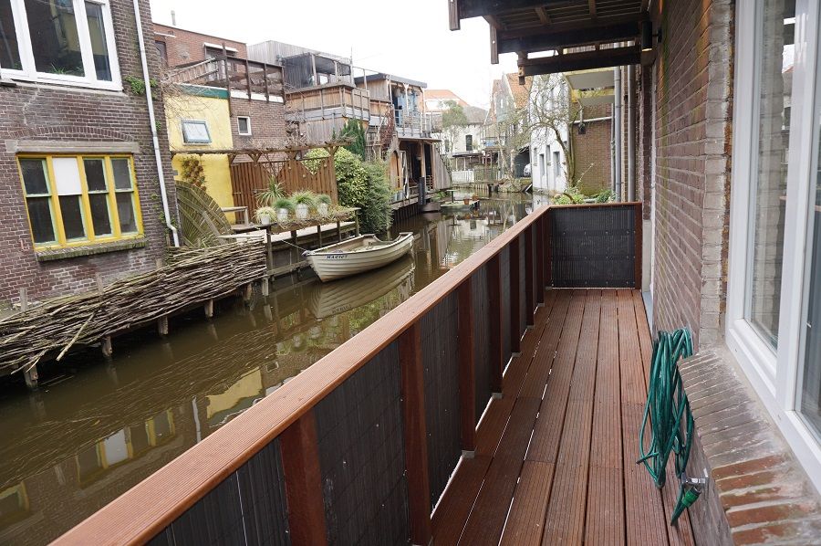 The apartment is located below street level on the water at the corner of Hogendijk and Czarinastraat.