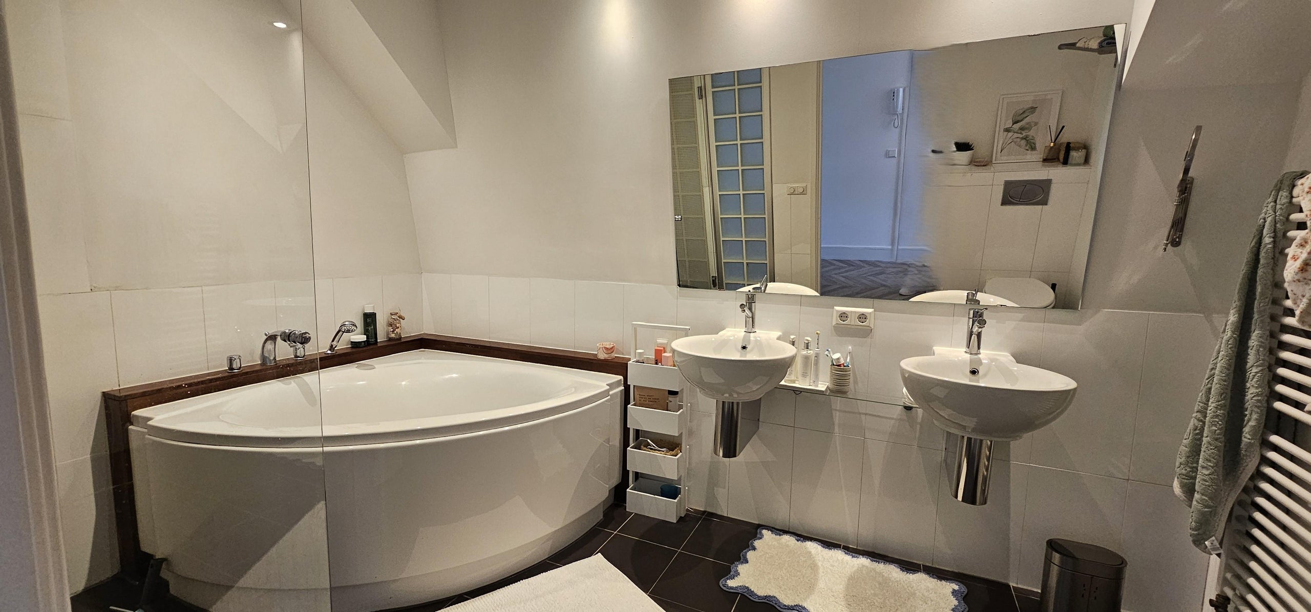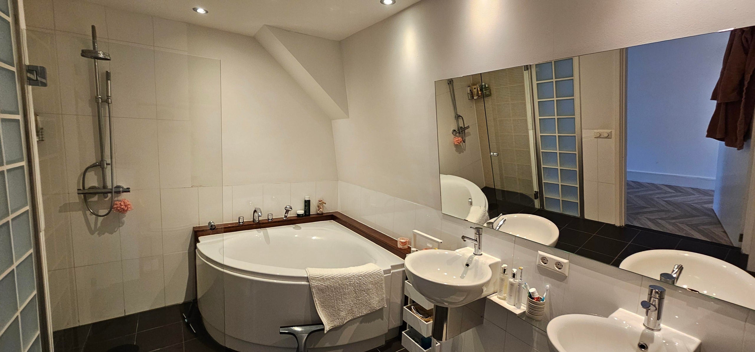 Ligbad, Dubbele wastafel, Vloerverwarming geheel, Zitbad, Douche, Hangend toilet, Wastafelmeubel