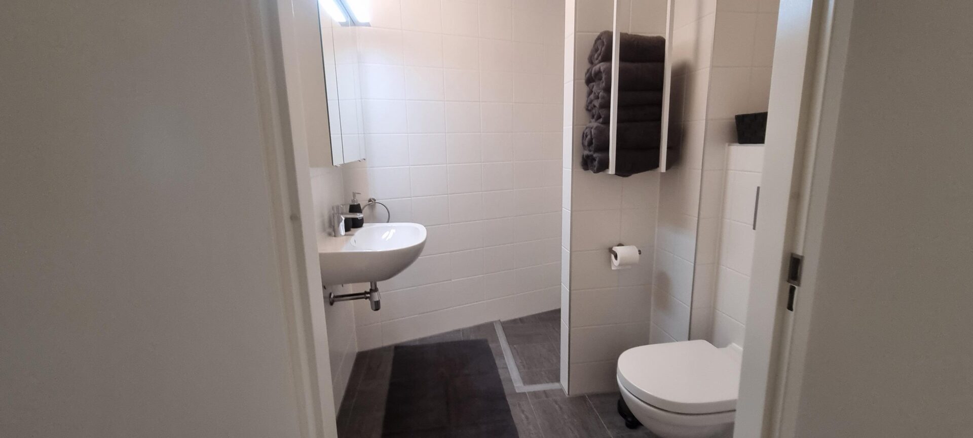 Douche, Hangend toilet, Wastafel, Wastafelmeubel