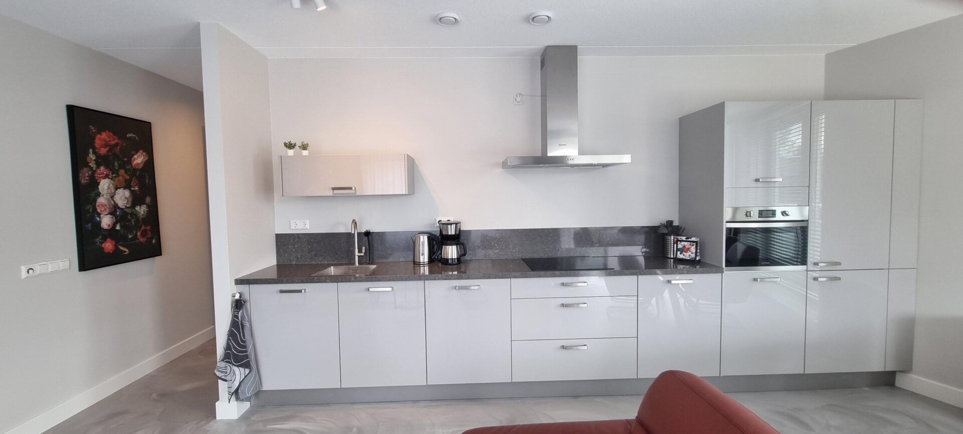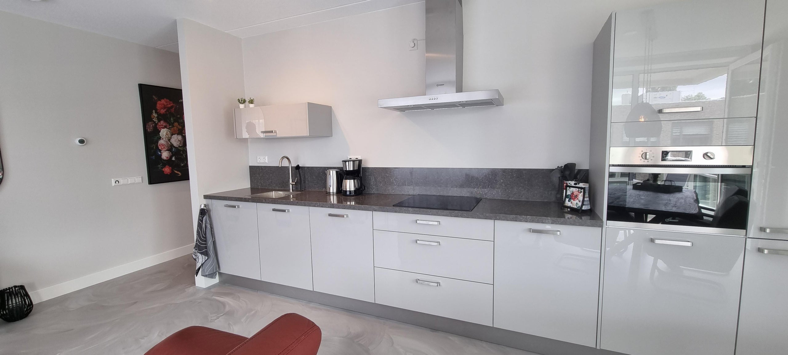 Het volledige appartement is voorzien van een prachtige gietvloer met vloerverwarming.