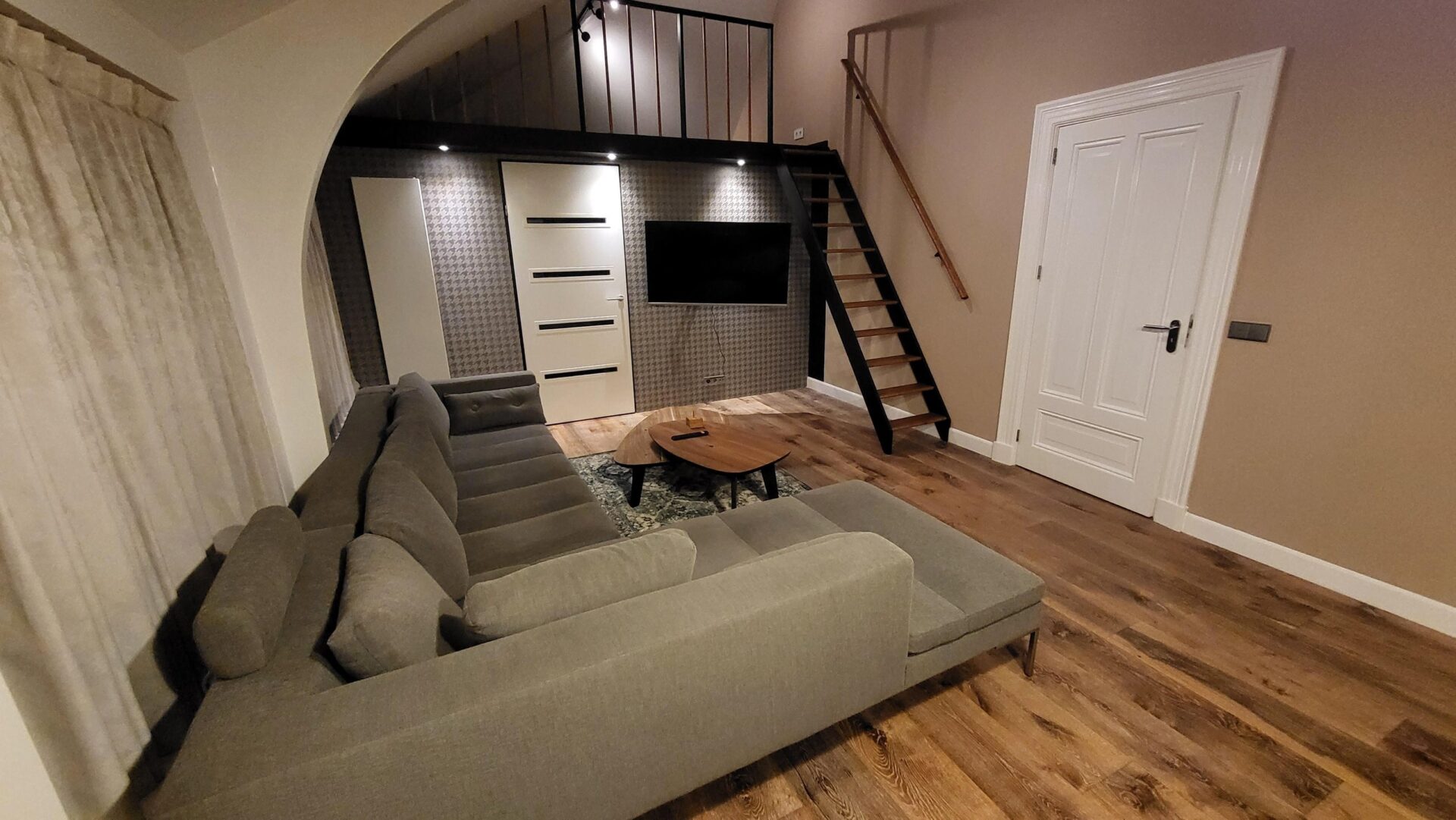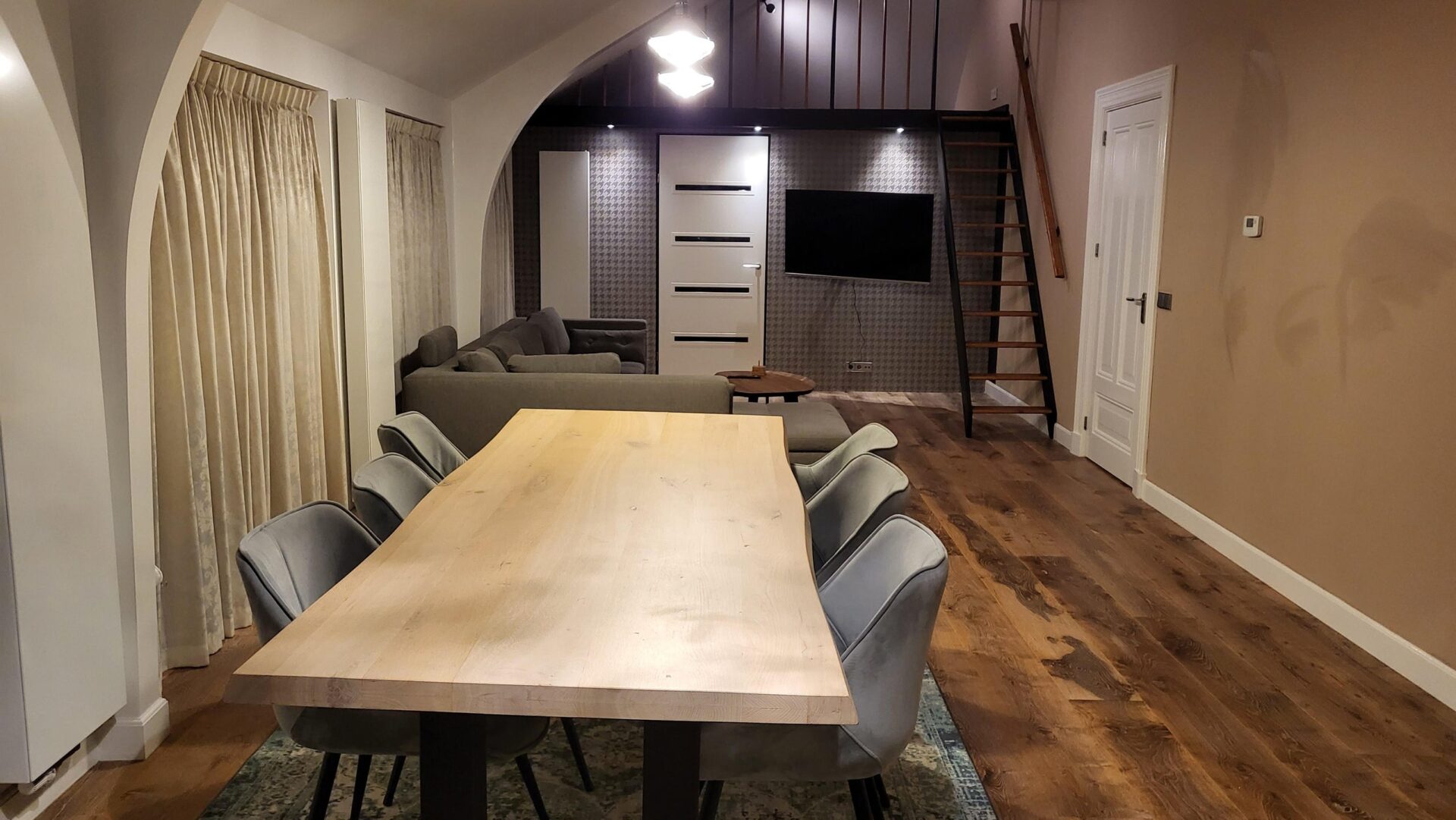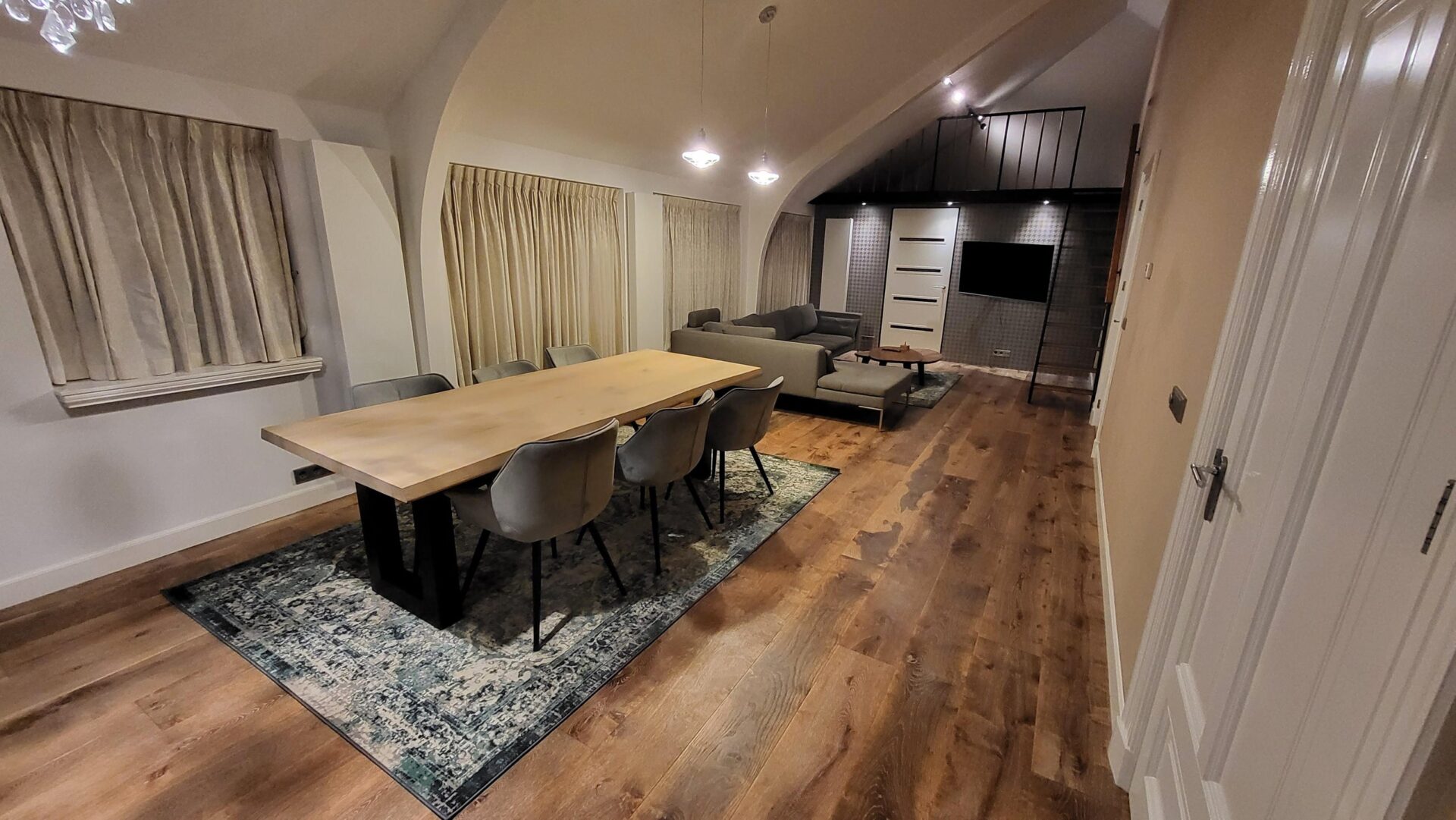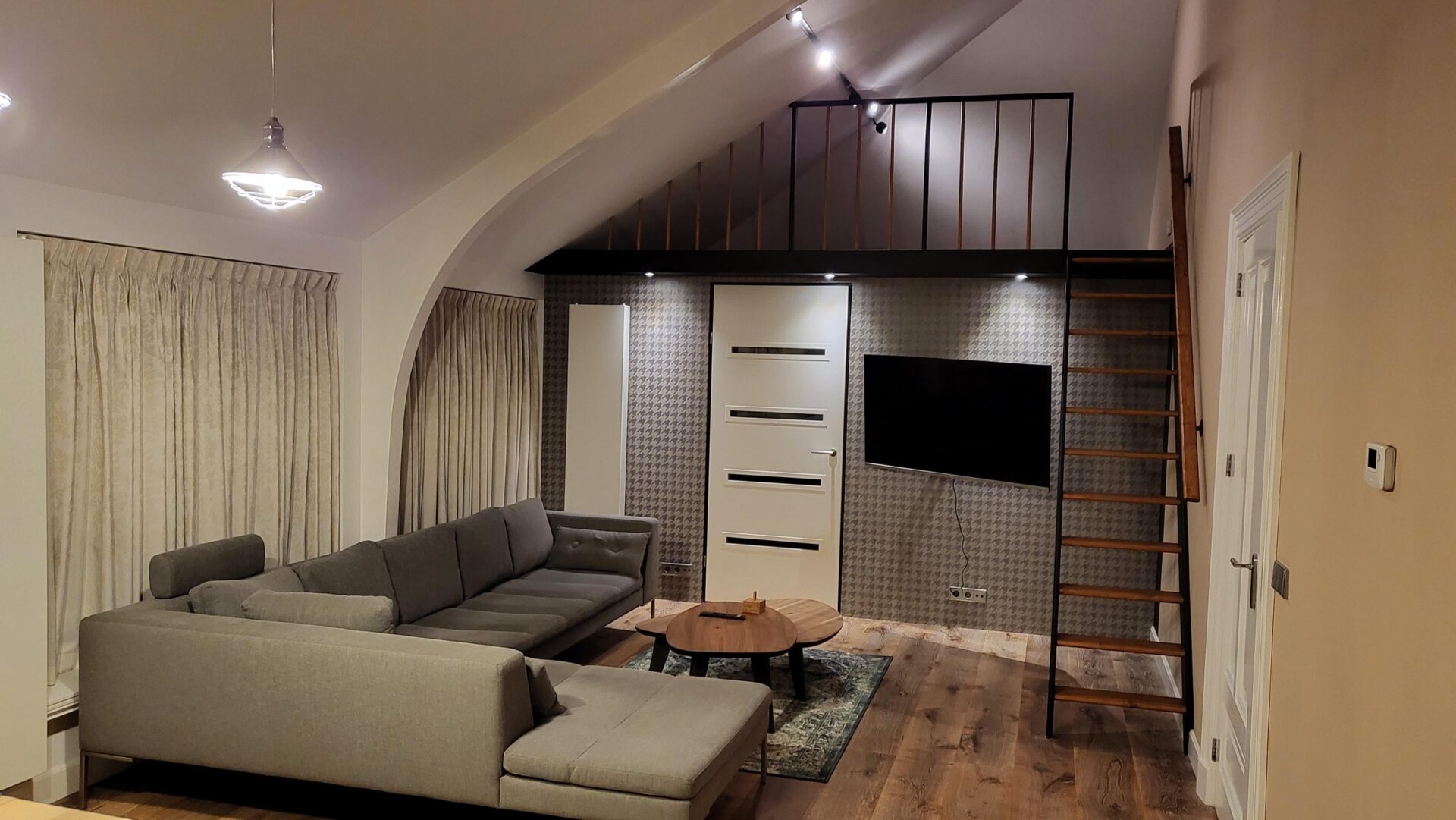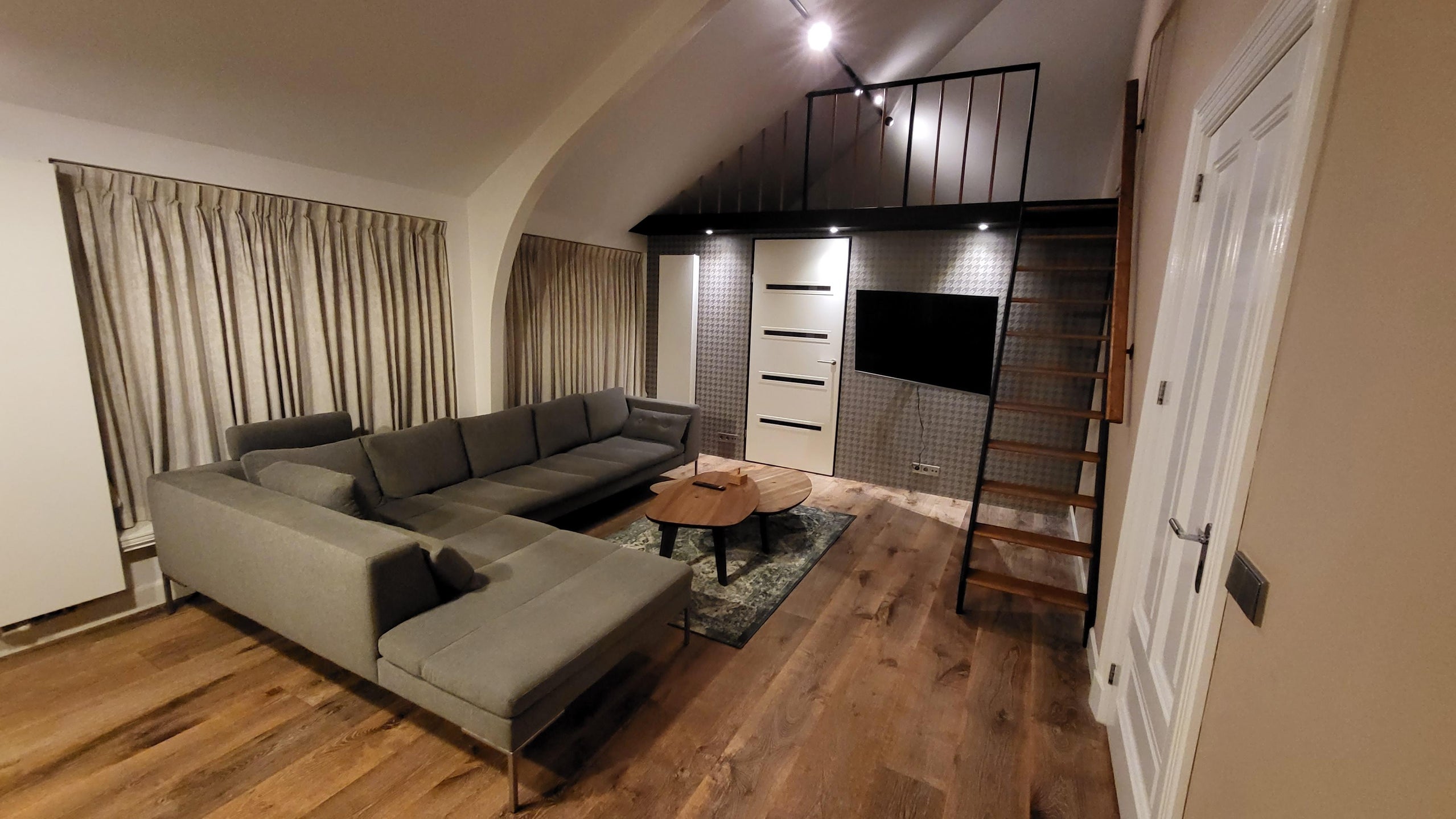 De hoge plafonds zorgen in het gehele apartment voor een extra ruimtelijk gevoel.