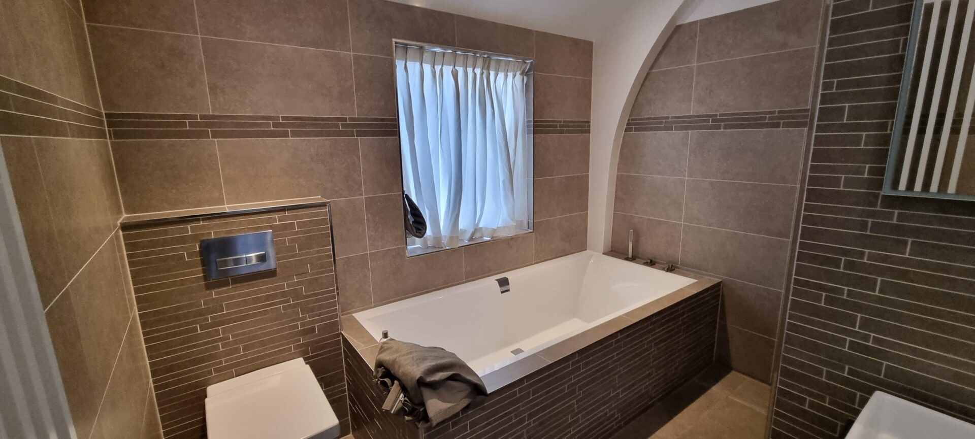 De tevens vorig jaar vernieuwde badkamer is en suite en via de slaapkamer te bereiken.