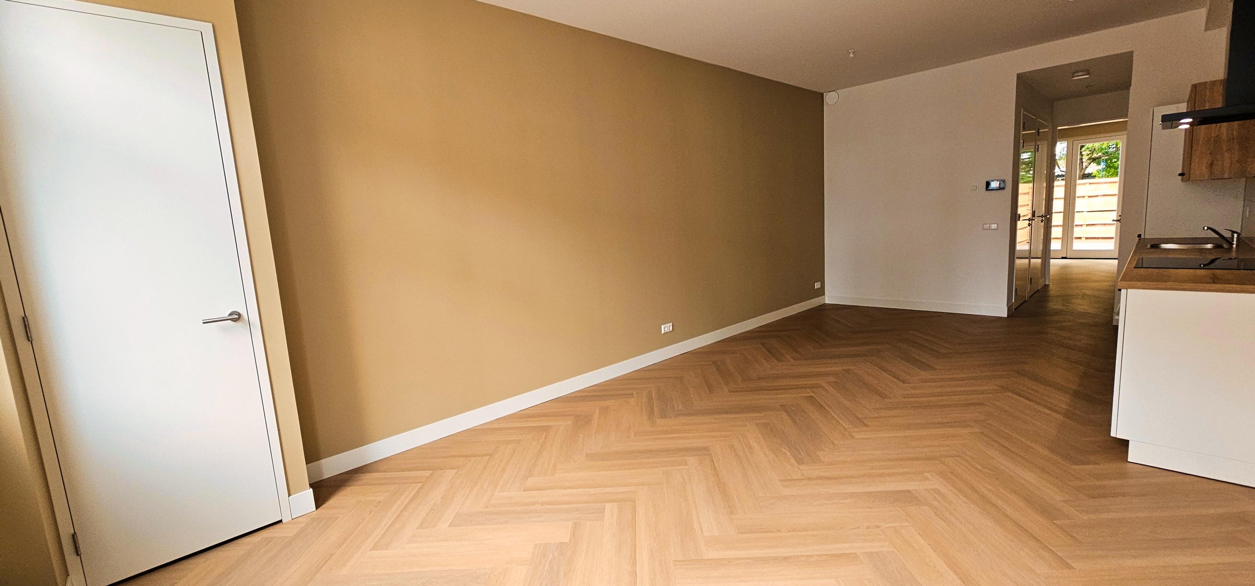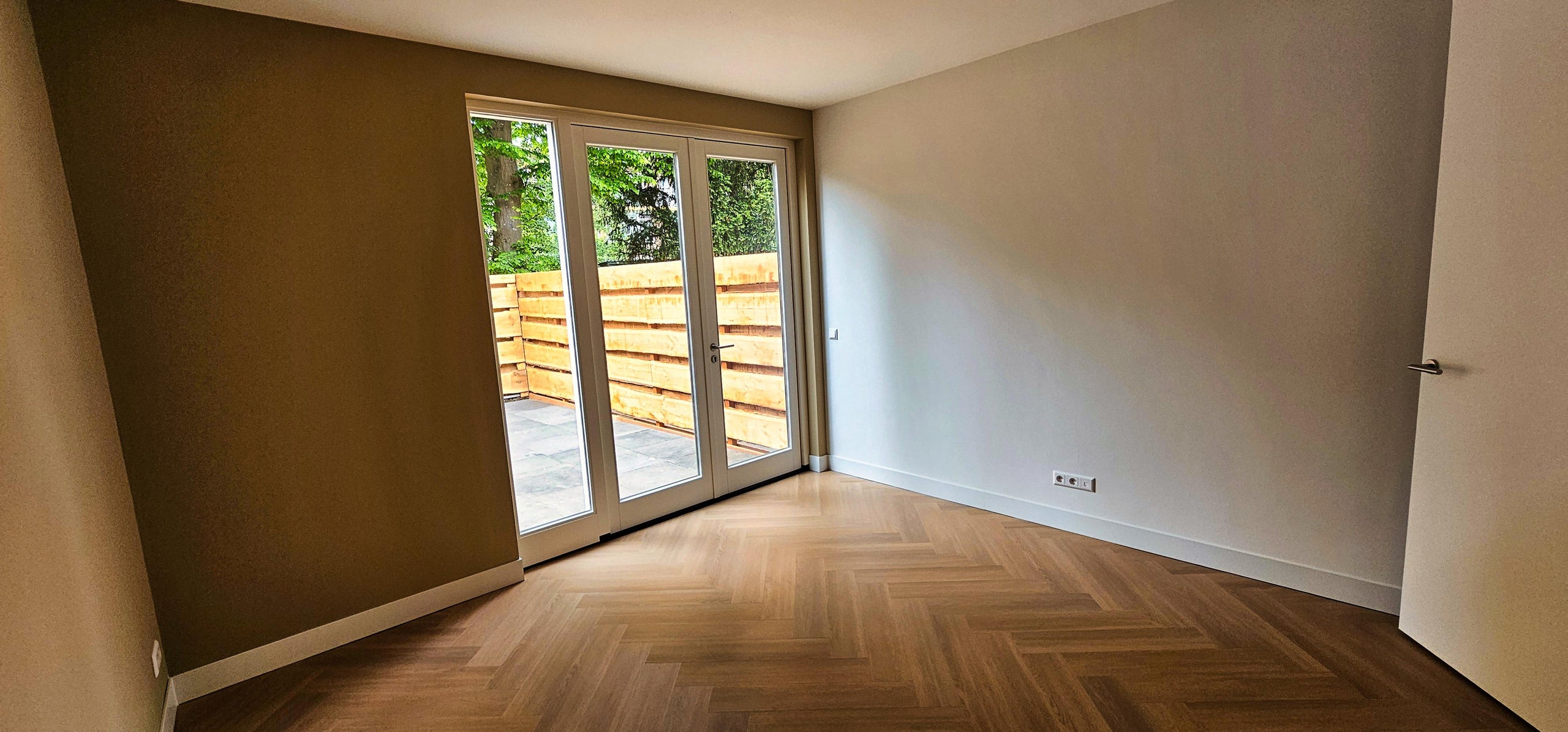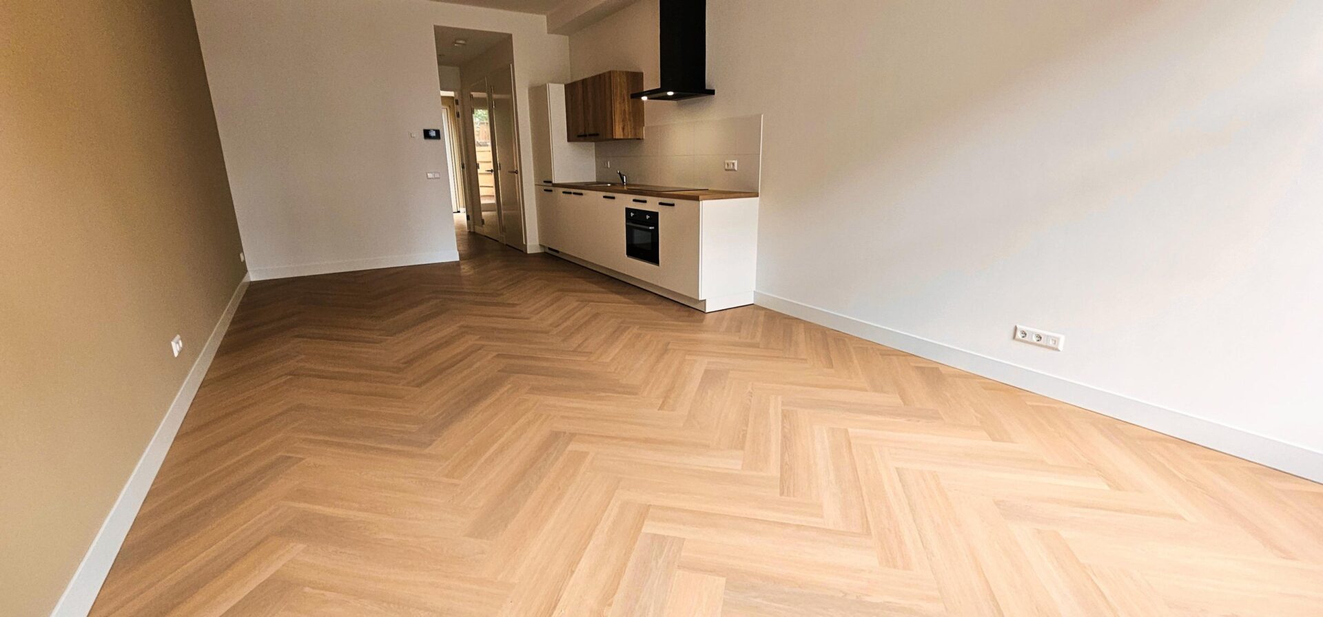 - Woonkamer met veel lichtinval en een prachtige visgraatvloer