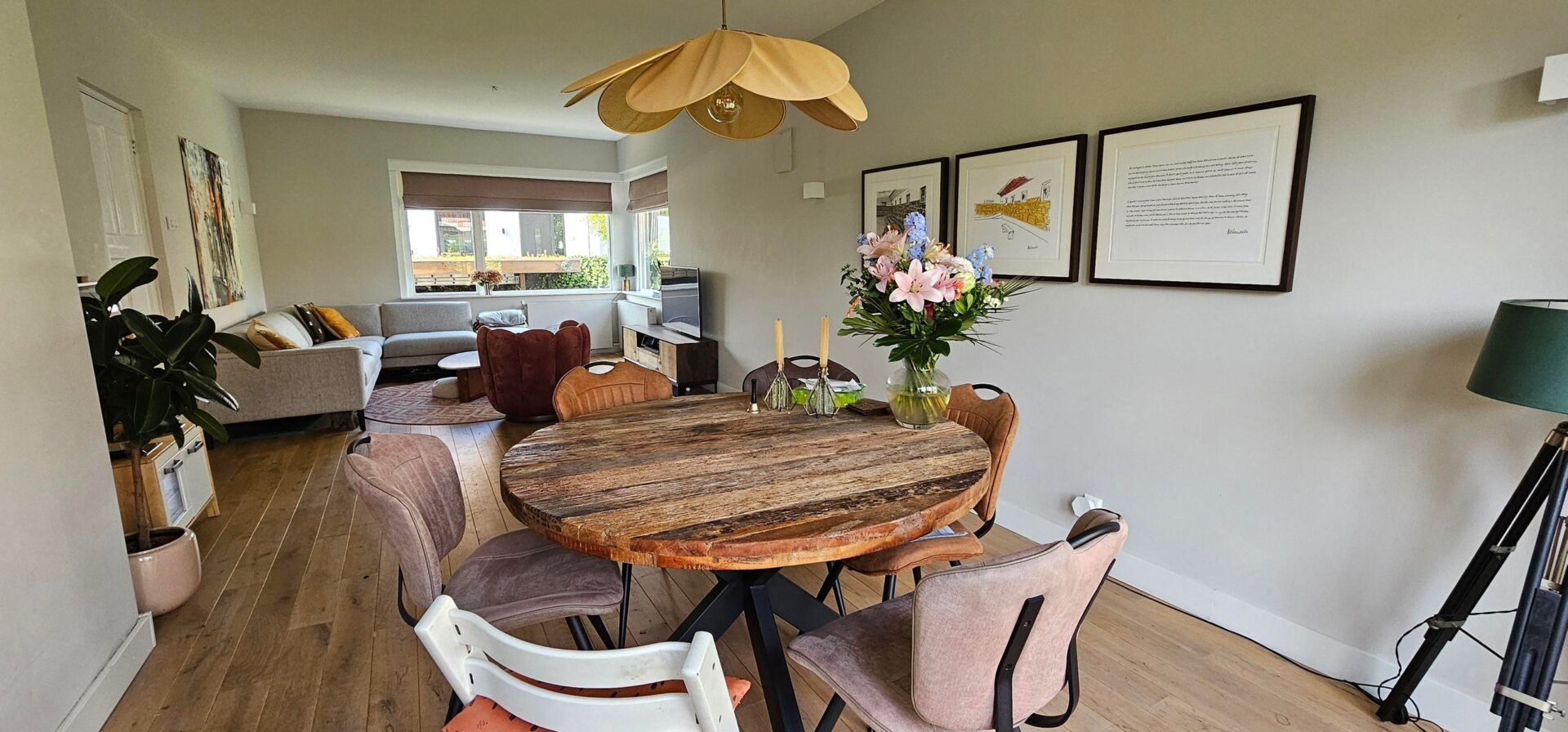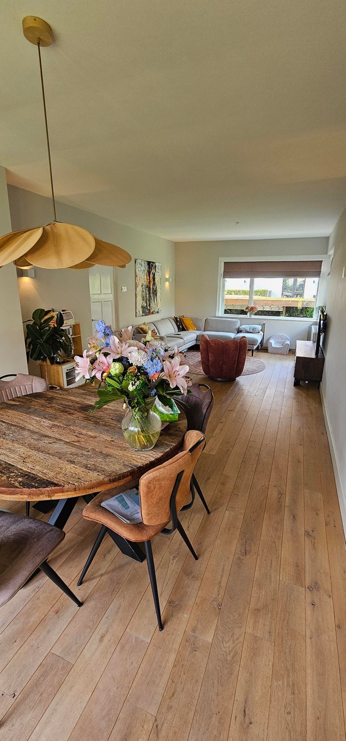 Woonoppervlakte: Ruime indeling met een sfeervolle woonkamer en grote ramen.