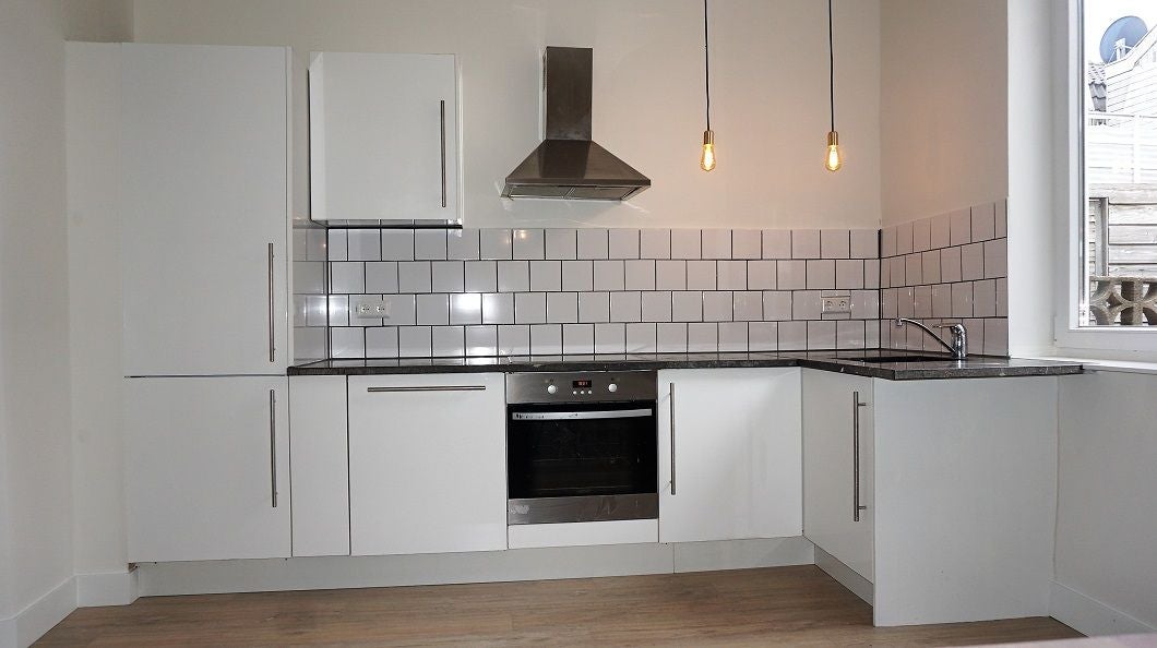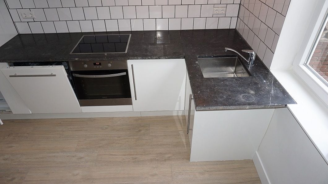 De keuken is voorzien van een koel/vries combi, oven, kookplaat, afzuigkap en vaatwasser.