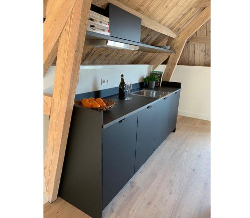 In het gehele woonruimte ligt een mooie eiken houten vloer en is voorzien van vloerverwarming. Het studio/appartement is zeer geschikt voor starters/zzpers.