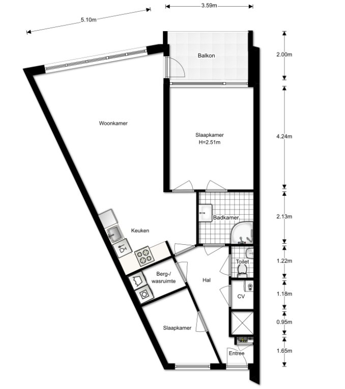 Te huur ruim 3-kamer appartement - Annie M.G. Schmidtstraat