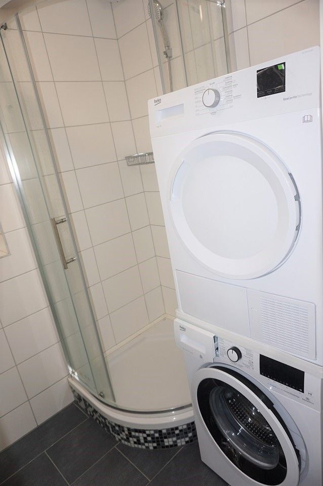 Aan de achterzijde bevindt zich de badkamer met douchehoek, wastafel met ombouw en toilet. Tevens staan hier de wasmachine en droger opgesteld. ok aan de achterzijde een klein maar fijn balkon aan het water en uitzicht over de oude Zaanse straten.
