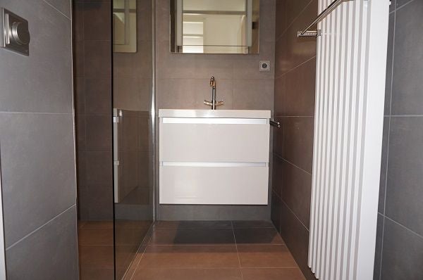Er is een keurige badkamer met inloopdouche en wastafel. Separaat toilet en separate ruimte met wasmachine/droger en CV opstelling.