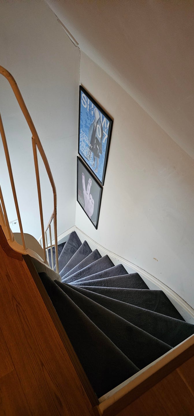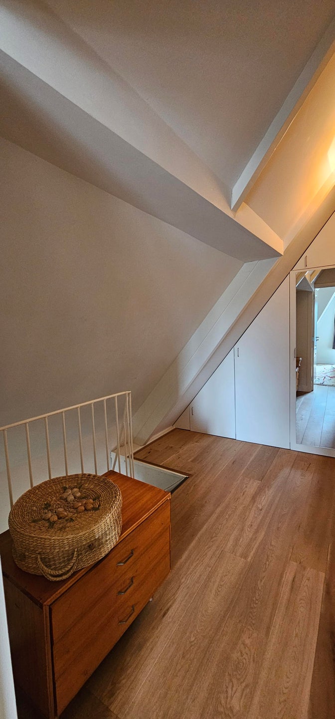 Bovenaan de trap komt u op een overloop waar inbouwkasten voor voldoende opbergruimte zorgen.