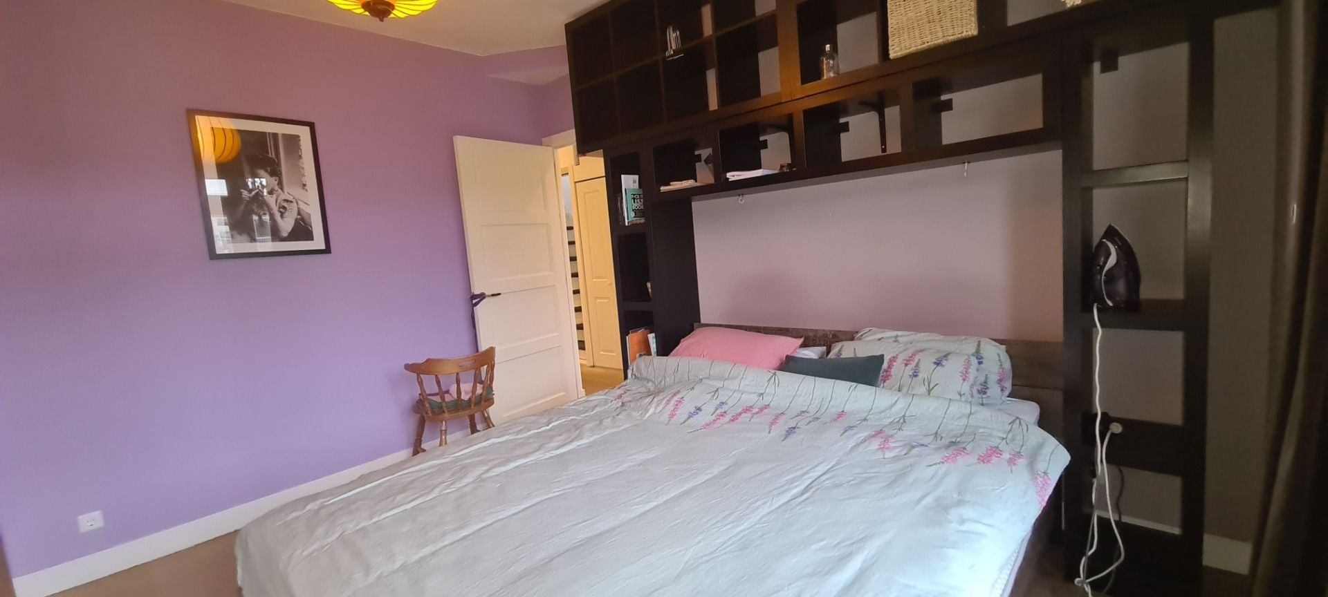 via de trap bereikt u het appartement via een schuifdeur op de 3 verdieping waar zich op de eerste verdieping de 4 slaapkamers, badkamer, toilet en wasruimte zich bevinden. Aan de achterzijde vind u de masterbedroom met inbouwschuifkast en persoonsbed met ombouw, daarnaast een kleine kamer voor eventueel een baby of wel een werkkamer. Beide kamers hebben toegang tot een balkon.