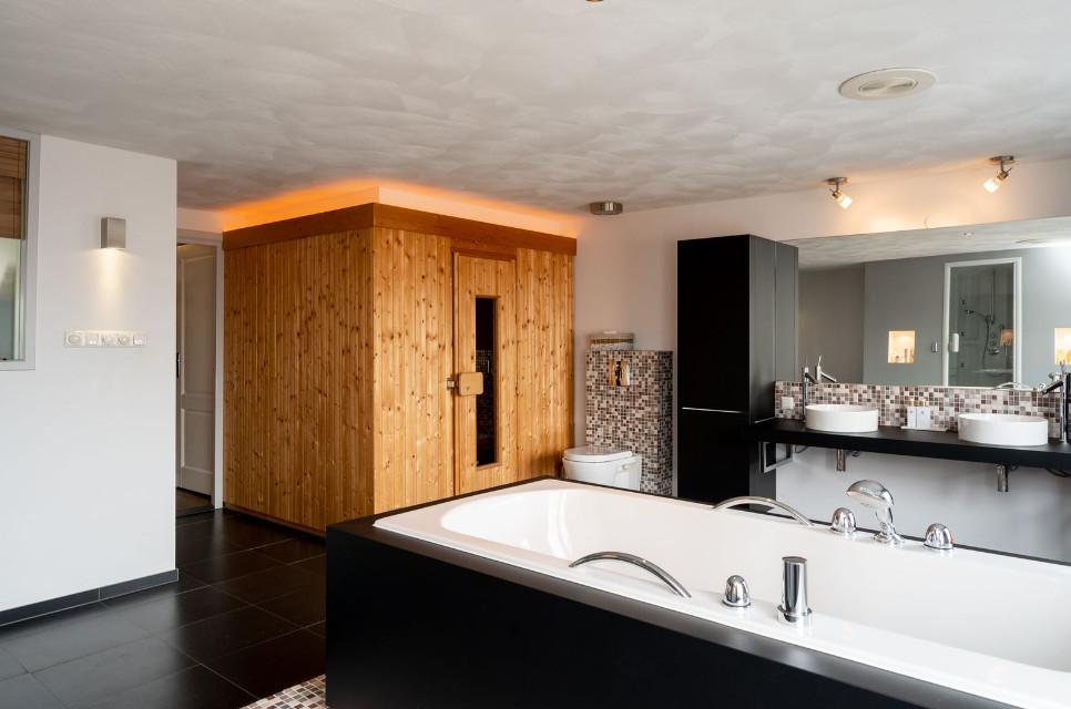 -Zeer luxe en ruime badkamer van 30 m² met bubbelbad, sauna voor 4 personen en stoomcabine
