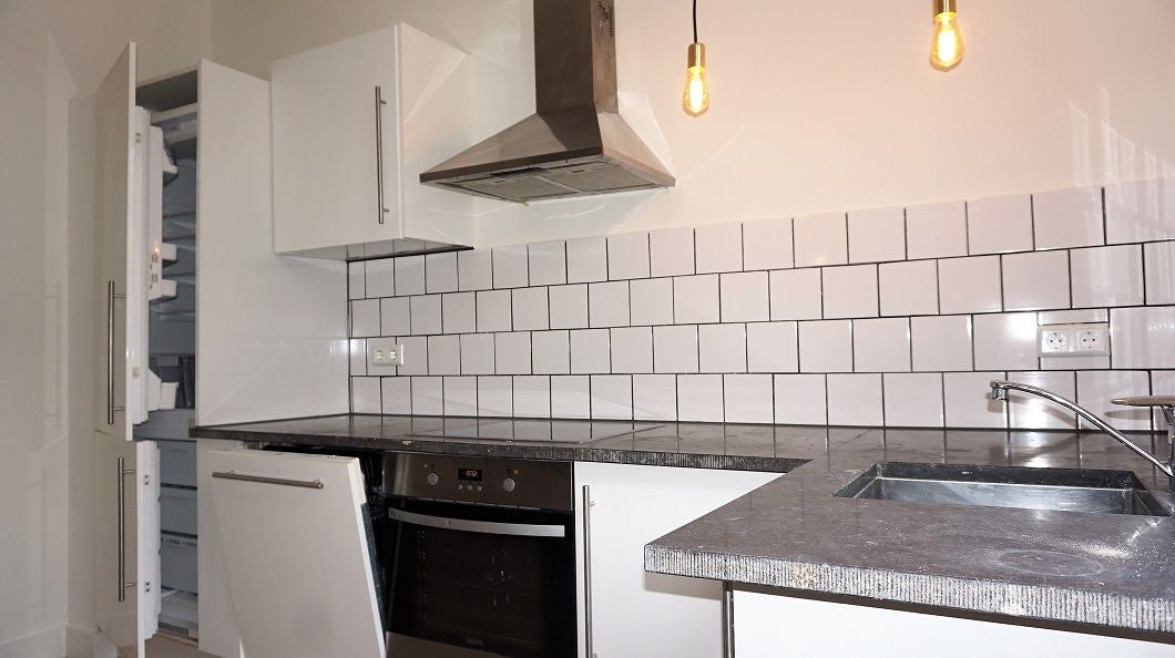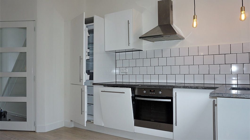 De keuken is voorzien van een koel/vries combi, oven, kookplaat, afzuigkap en vaatwasser.