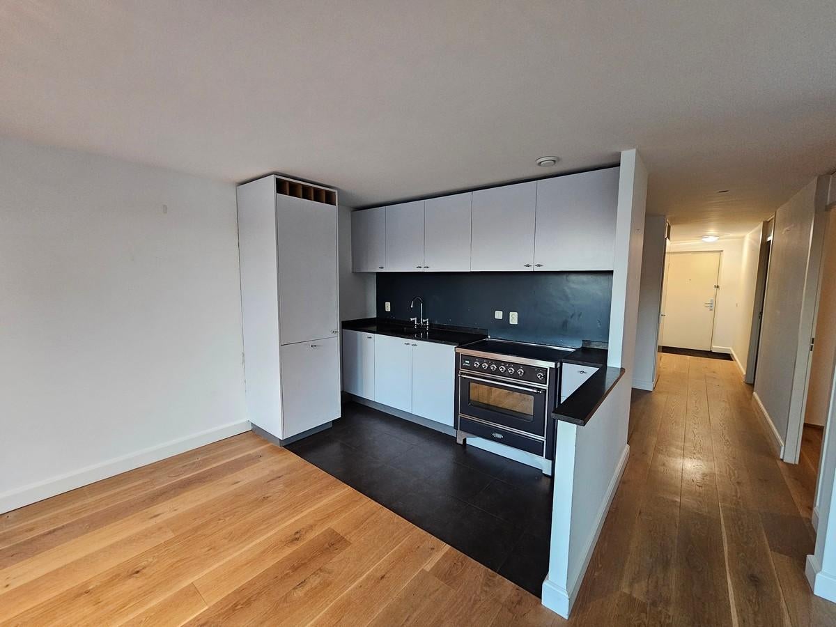 Indeling: Entree, hal, meterkast, kast met cv opstelling, separaat toilet met fontein, badkamer met inloopdouche en wastafel, separate ruimte voor de wasmachine en droger en eventueel bergruimte. 2 ruime slaapkamers. Ruime woonkamer met open keuken voorzien van diverse inbouwapparatuur.
